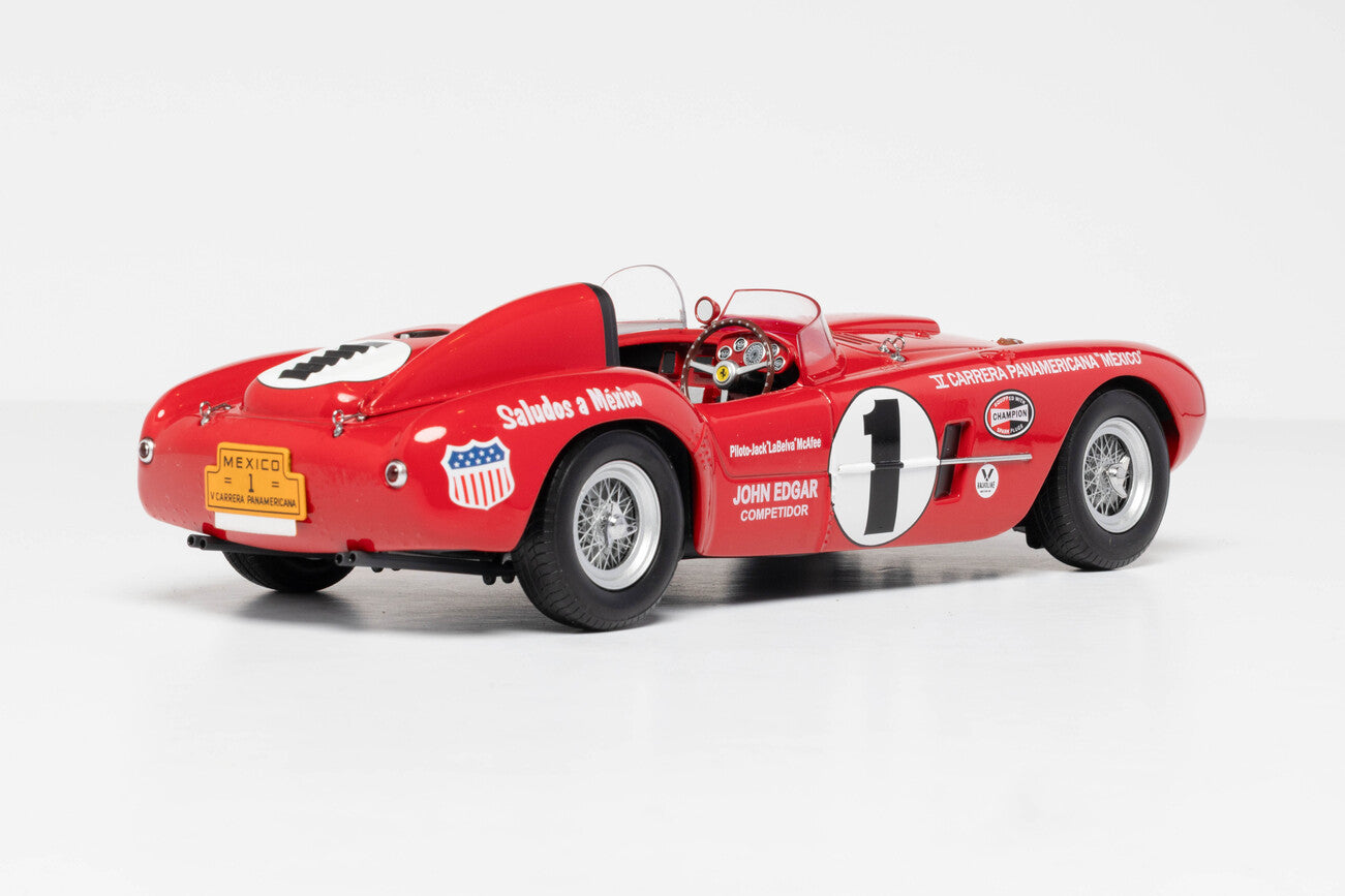 The "375 Panamericana" refers to the Ferrari 375 Plus, a powerful V12-engine sports car that won the 1954 Carrera Panamericana race, driven by Umberto Maglioli. It was an evolution of the 375MM model, featuring a larger 4954cc engine with around 330 horsepower, making it ideal for high-speed, power-focused races and winning the World Sports Championship for Ferrari in 1954. The car's body was made of hand-beaten aluminum panels attached to a tubular steel chassis.