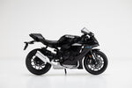 Yamaha R1M model in black, featuring a detailed resin body, realistic interior and exterior, hand-finished, collector’s edition.