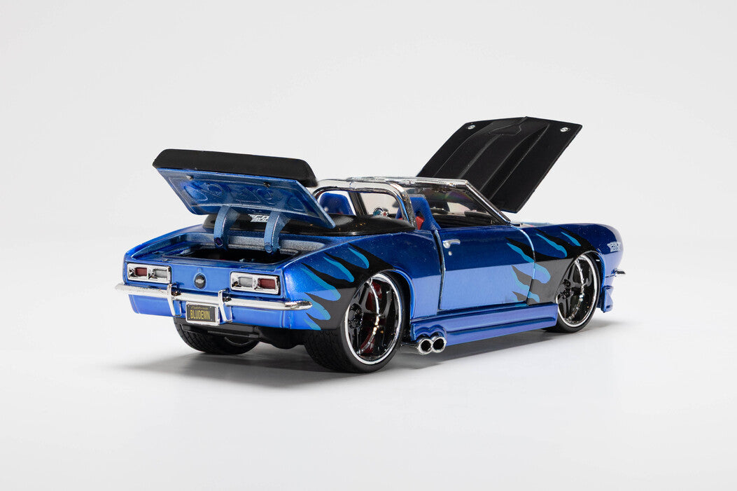 The 1968 Chevrolet Camaro SS is a two-door, five-seat, rear-wheel-drive coupe or convertible with an optional 350ci V8 or 396ci V8 engine, paired with a 3-speed manual, 3-speed automatic, or 2-speed automatic transmission. The SS package (Super Sport) was available for both coupe and convertible body styles, adding performance features like a unique hood, badging, and specific engine options.