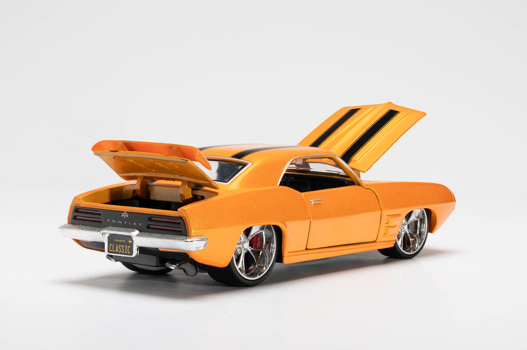 The Pontiac Firebird is an American two-door sports car, built by General Motors' Pontiac division from 1967 to 2002, designed to compete with the Ford Mustang. Built on the same platform as the Chevrolet Camaro (the F-Body), the Firebird was known for its aggressive styling and powerful V8 engines, particularly the high-performance Trans Am models, offering a blend of style and muscle car performance.