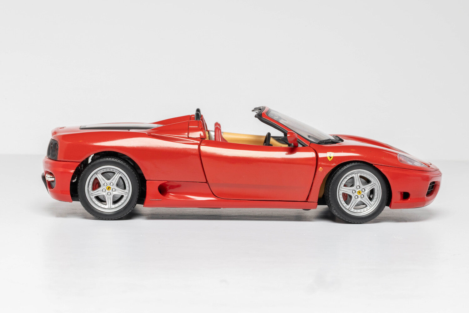 The Ferrari 360 Spider is a two-seater, soft-top convertible with a 3.6-liter V8 engine producing 400 horsepower and 275 lb-ft of torque. It accelerates from 0 to 60 mph in about 4.5 seconds and has a top speed of around 180 mph. The car features an all-aluminum chassis, a mid-engine layout for optimal weight distribution, and an electronically adjustable suspension for enhanced handling.