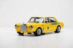 The Mercedes SEL 300 6.8 #38 Yellow Team Hannen refers to the Mercedes-Benz 300 SEL 6.8 AMG, specifically the car with starting number 38, driven by Hans Heyer in the "Hannen Alt" sponsored livery at the 1971 Hockenheim season finale.