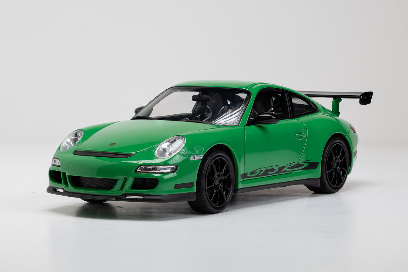 The Porsche 911 (997) GT3 RS is a lighter, more track-focused version of the 911 GT3, featuring a wider rear body, manual transmission, and specialized components like carbon-fiber parts and a large rear wing for improved aerodynamics.