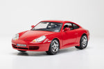 The Porsche Carrera 1997 model scale in red highlights its classic sports car design and timeless curves, making it a striking collectible.