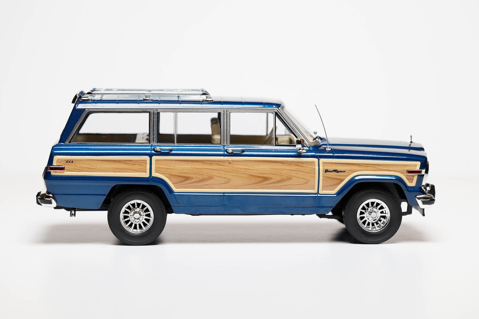 Grand Wagoneer model in navy blue, featuring a detailed resin body, realistic interior and exterior, hand-finished, collector’s edition.