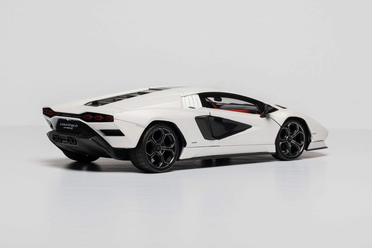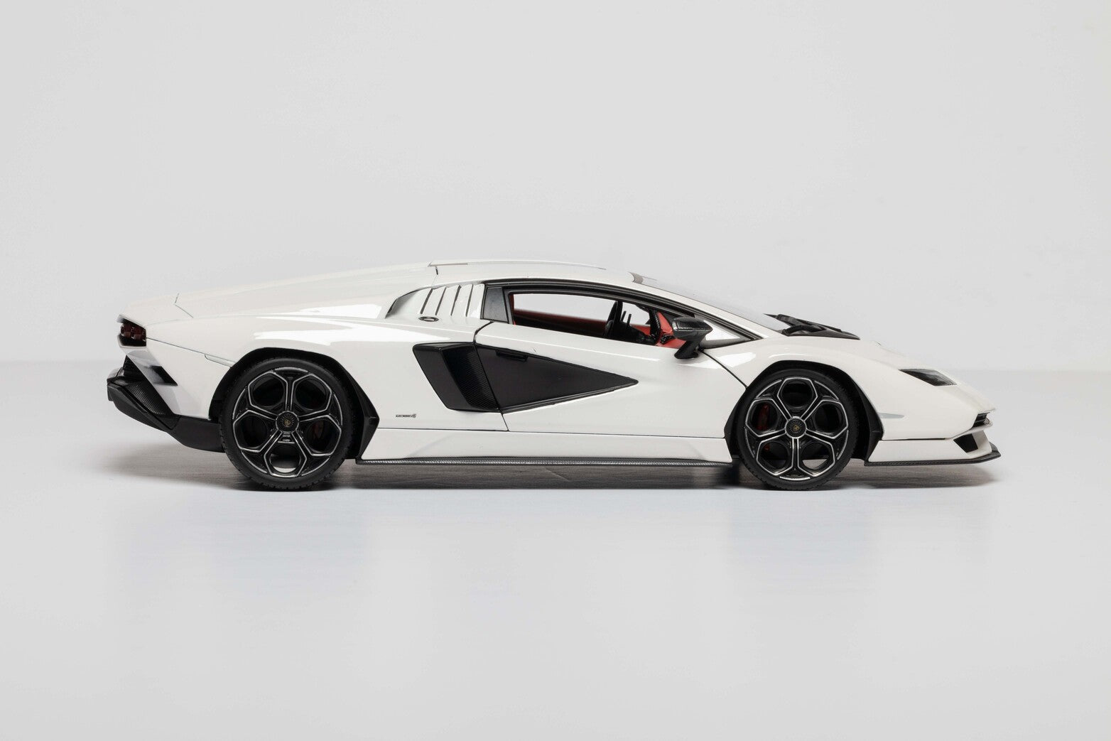 The latest Lamborghini Countach is the LPI 800-4, a limited-edition (112 units) hybrid supercar that pays homage to the original's design with a futuristic twist. It features a longitudinal V12 engine paired with electric motors for a combined output, distinctive scissor doors with sharper lines, a carbon fiber monocoque, and a geometric, futuristic interior with exclusive trims. The car has a top speed of 355 km/h (221 mph) and comes with an advanced 7-speed dual-clutch transmission.
