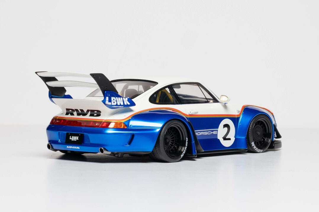 A Porsche Liberty Walk (LB) x RWB body is an extreme, riveted widebody conversion for classic Porsche 911s, blending Japanese tuner style (Akira Nakai's Rauh-Welt Begriff/RWB) with Liberty Walk's signature aggressive stance, featuring massive fender flares, huge rear wings, deep-dish wheels, and exposed hardware, transforming the iconic German sports car into a radical, street-legal race-inspired art piece.