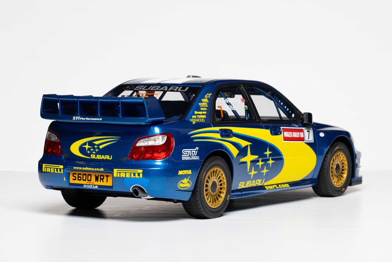 Subaru Impreza (S9) WRC car, specifically the #7 car driven by Petter Solberg and Phil Mills at the 2003 Wales Rally GB, which they won.
