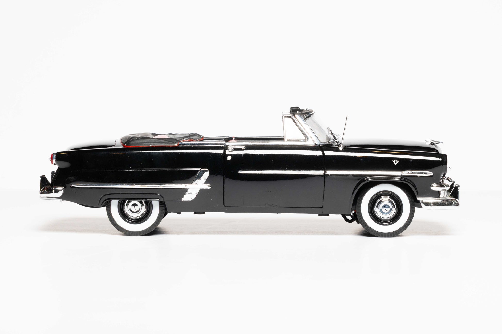 The 1953 Ford Crestline Sunliner is a premier 2-door convertible celebrating Ford’s 50th anniversary, featuring the final, reliable 239 cubic inch "flathead" V8 engine (110 hp). As the top-tier trim, it boasts a power-operated soft top, extensive chrome trim, "Jet-Ray" taillights, and often came with options like Ford-O-Matic transmission, power steering, and fender skirts.