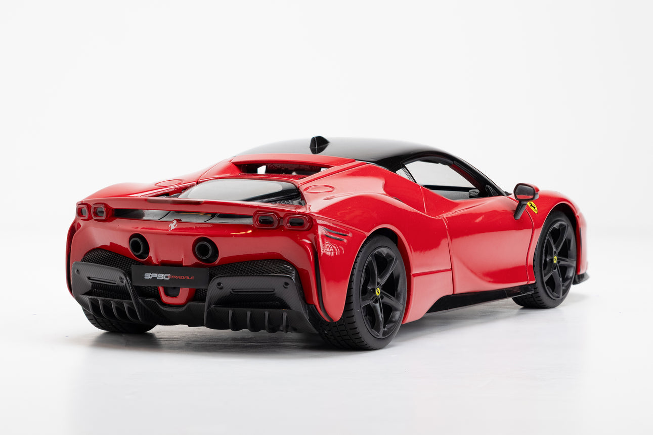 The Ferrari SF90 Stradale model scale in red showcases its sleek hybrid supercar design and iconic Italian styling, making it a standout collectible.