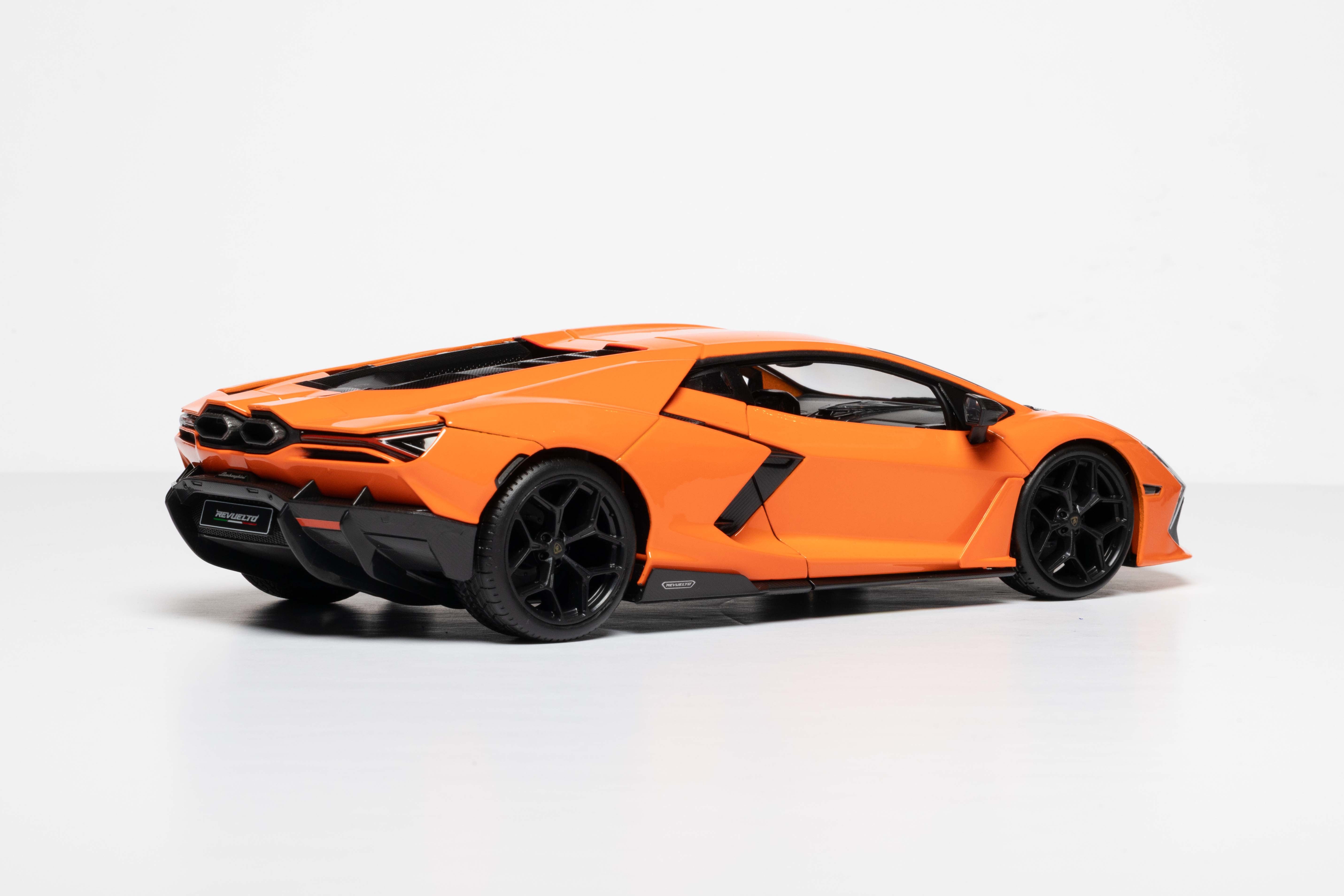 The Lamborghini Revuelto is the first HPEV (High Performance Electrified Vehicle) super sports car from Lamborghini, released just before the company's 60th anniversary. It combines a new 6.5-liter naturally aspirated V12 engine with three electric motors to produce a combined 1015 horsepower (1015 CV), achieving a top speed of over 350 km/h and a 0-100 km/h time of 2.5 seconds. The Revuelto features a high-performance hybrid powertrain, an 8-speed transversal dual-clutch e-gearbox, an all-carbon fiber monocoque chassis, and a modern interior with three digital displays.