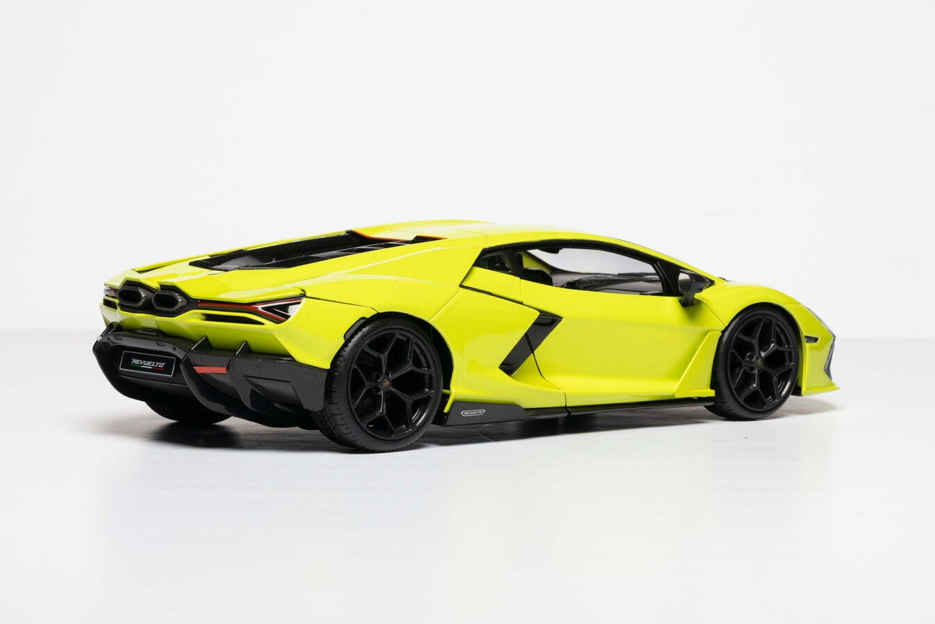 The Lamborghini Revuelto is the first HPEV (High Performance Electrified Vehicle) super sports car from Lamborghini, released just before the company's 60th anniversary. It combines a new 6.5-liter naturally aspirated V12 engine with three electric motors to produce a combined 1015 horsepower (1015 CV), achieving a top speed of over 350 km/h and a 0-100 km/h time of 2.5 seconds. The Revuelto features a high-performance hybrid powertrain, an 8-speed transversal dual-clutch e-gearbox, an all-carbon fiber monocoque chassis, and a modern interior with three digital displays.