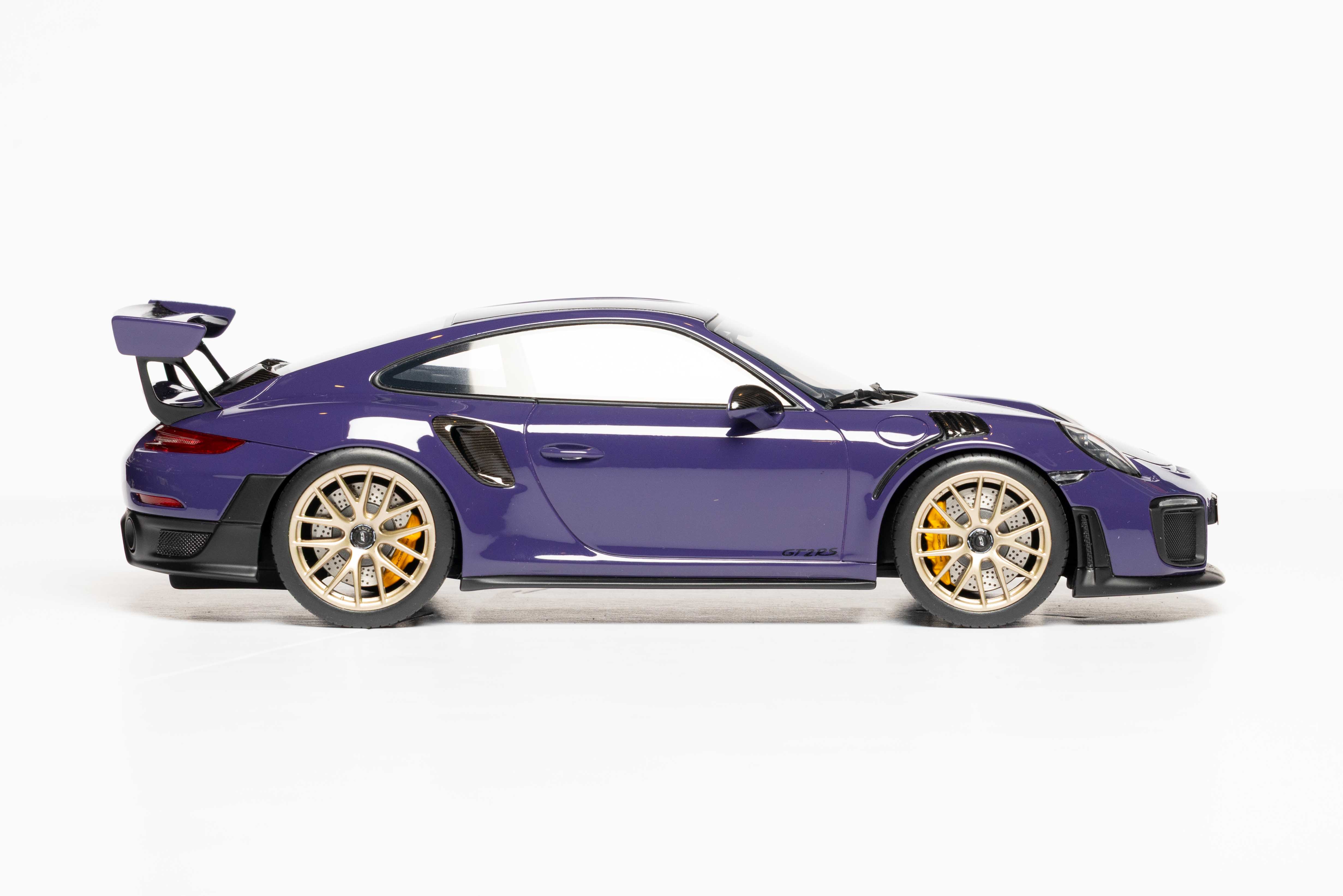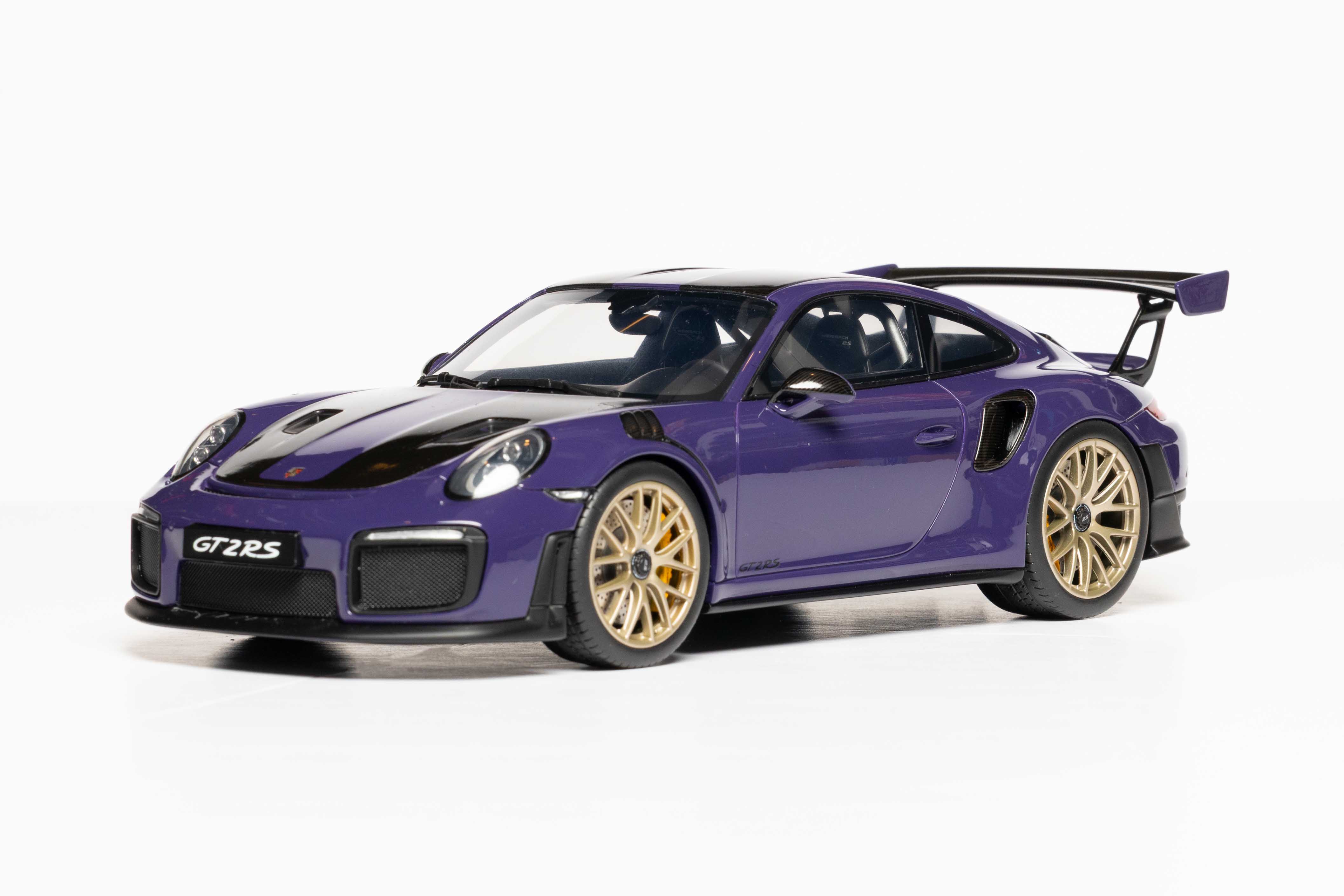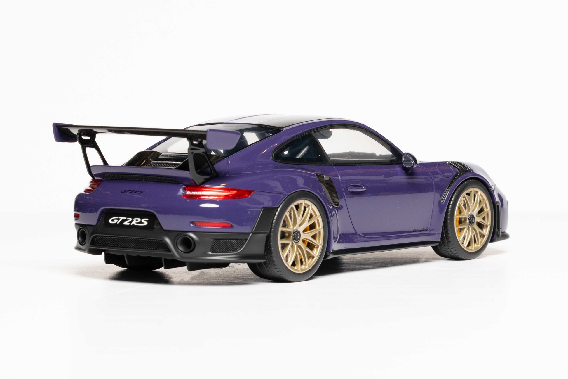 The Porsche 911 (991.2) GT2 RS is a street-legal, track-focused supercar featuring a 3.8L twin-turbo flat-six engine producing 700 hp and 750 Nm of torque. Rear-wheel drive, it reaches 0–100 km/h in 2.8 seconds with a 340 km/h top speed. It features extensive carbon fiber, a 7-speed PDK gearbox, rear-axle steering, and, with the optional Weissach Package, weighs significantly less for maximum performance.