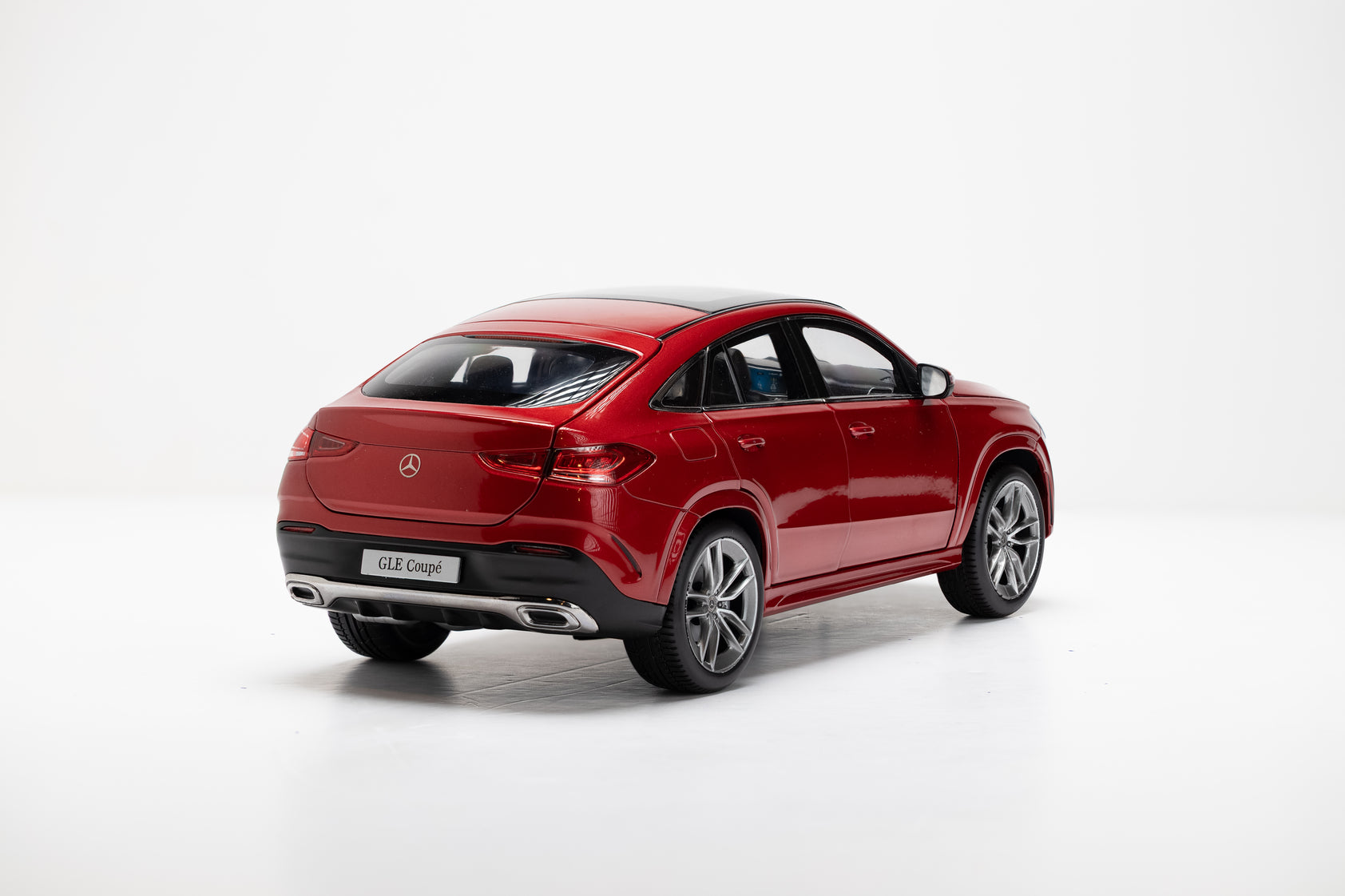 Mercedes GLE Coupe scale model in red, featuring sporty luxury SUV design and detailed craftsmanship, perfect for collectors and car enthusiasts.
