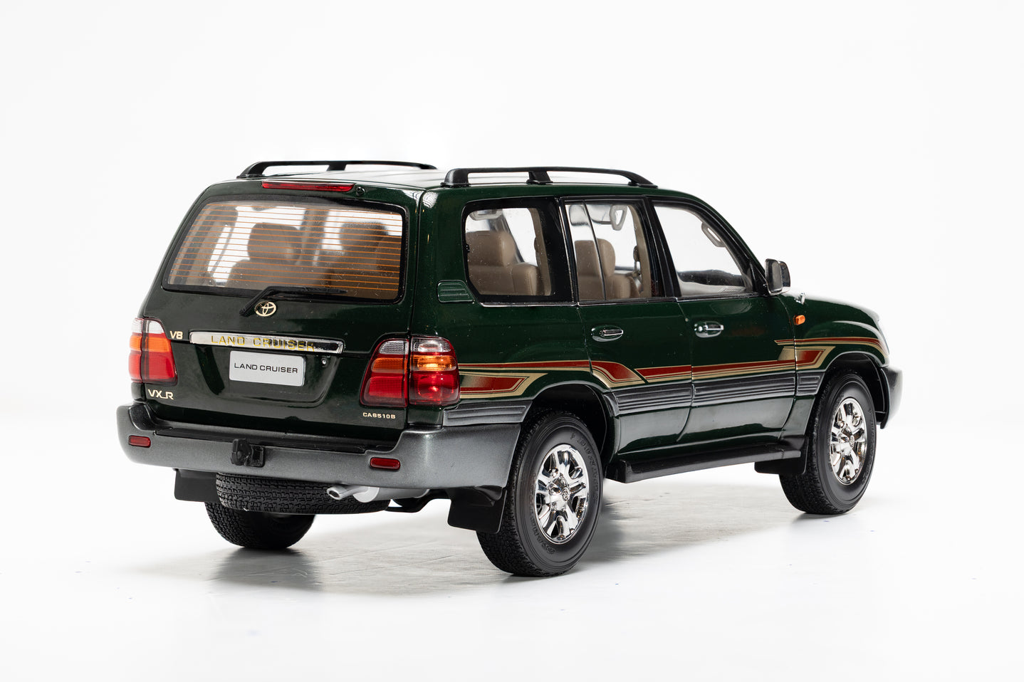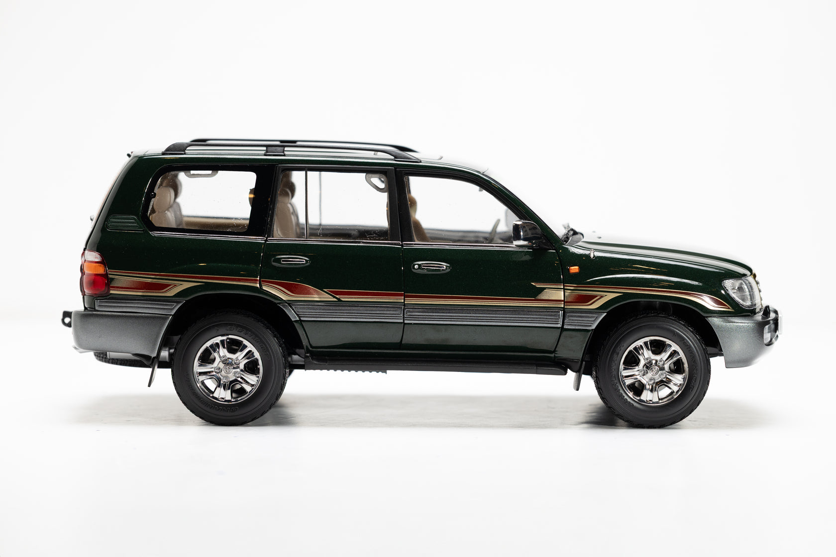 Toyota Land Cruiser scale model in green, featuring rugged SUV design and detailed craftsmanship, perfect for collectors and car enthusiasts.