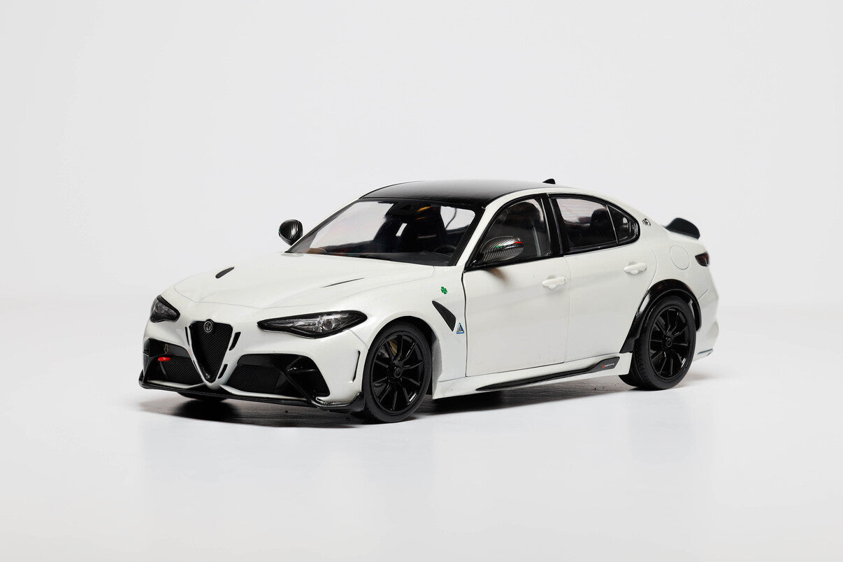 The Alfa Romeo Giulia GTA is a lightweight, high-performance variant of the Giulia sports sedan, featuring a powerful 540-hp 2.9-liter twin-turbo V6 engine and extensive use of ultralight materials like carbon fiber and aluminum, reducing weight by up to 100 kg for a superior power-to-weight ratio and exhilarating performance. It boasts a Formula 1-inspired active aerodynamic package, a wider track, and unique center-lock wheels, offering two distinct configurations: the road-focused GTA and the track-focused, two-seat GTAm, which swaps rear seats for helmet storage and a roll cage.