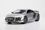 The Audi R8 GT model scale in grey highlights its aggressive styling and lightweight performance design, making it a prized collectible.