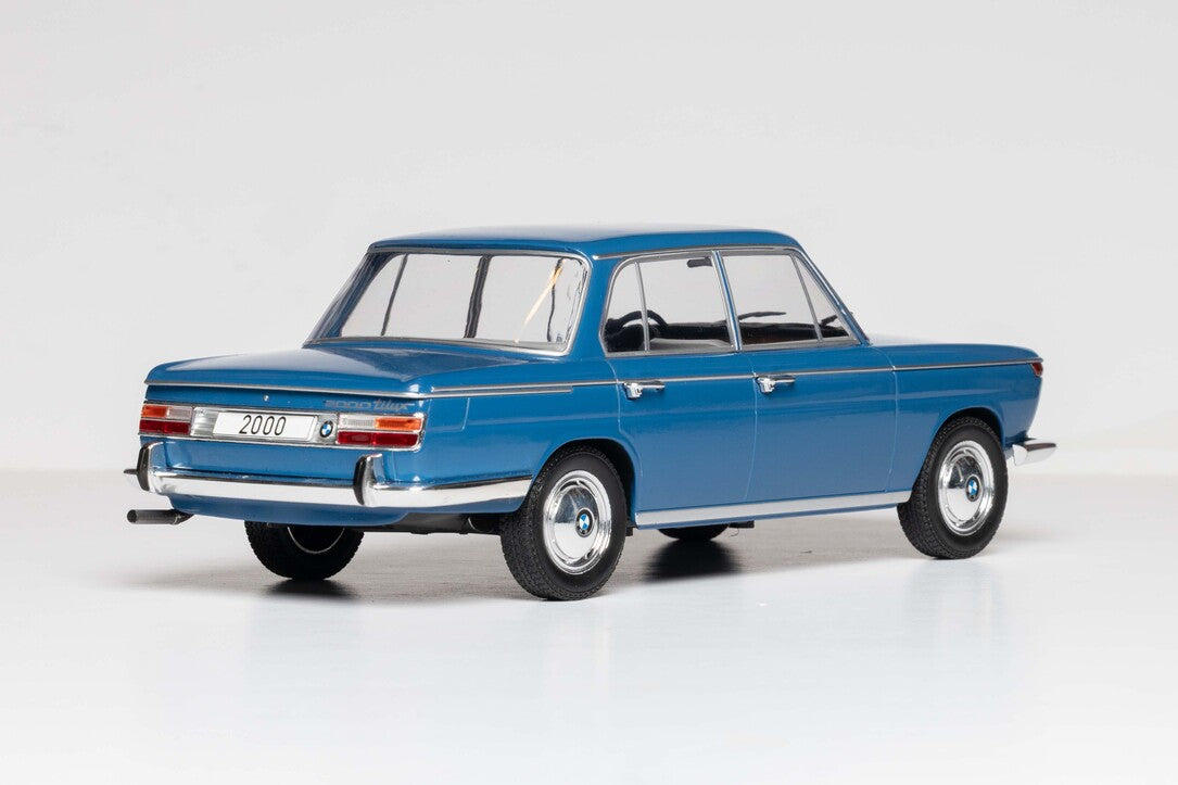 The BMW 2000 was a four-door mid-class sedan from 1962 that launched the "Neue Klasse" (New Class) series, which defined BMW as a sporty and dynamic brand. It featured a newly designed 1.5-liter, 80 hp four-cylinder engine that delivered high performance for its time and was the foundation for later, more powerful variants like the 1800 models.