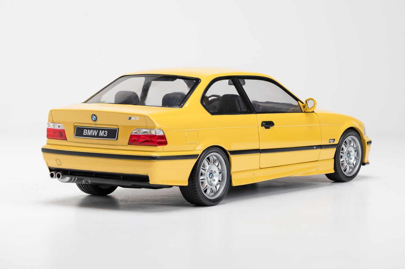 The BMW E36 M3 Coupe was a high-performance two-door sports car launched in 1992, notable for being the first M3 to use a six-cylinder S50 or S52 engine, a six-speed manual, and having a more subtle design than its predecessor. Early models featured a 286 hp S50B30 engine with VANOS, while later versions received a more powerful 321 hp 3.2-liter S50B32 engine with double VANOS