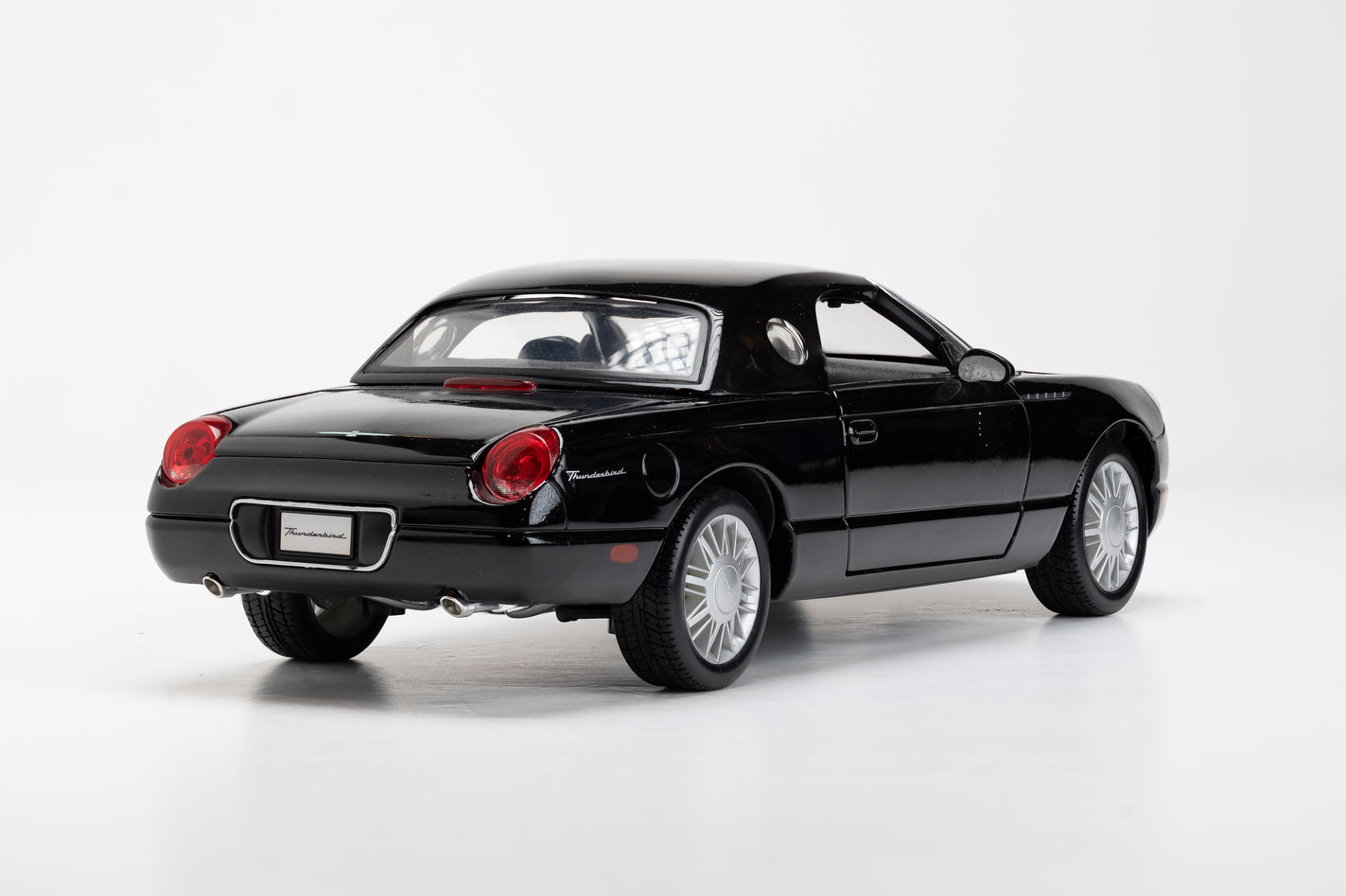 Ford Thunderbird scale model in black, featuring classic elegant design and detailed craftsmanship, ideal for collectors and car enthusiasts.