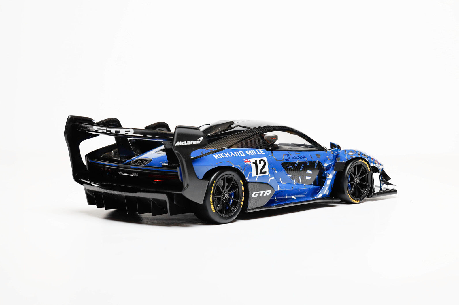 The McLaren Senna GTR N°12 Richard Mille 2019 refers to a specific version of the McLaren Senna GTR, a track-only hypercar designed for circuit domination, with an engine and aerodynamics focused on maximizing speed and downforce. The "N°12" and "Richard Mille" likely refer to a specific livery or a watch collaboration, as the Richard Mille name is associated with a watch inspired by the Senna's design and the McLaren Senna GTR had a limited production run of 75 cars in 2019, some of which were sold with racing-themed options.
