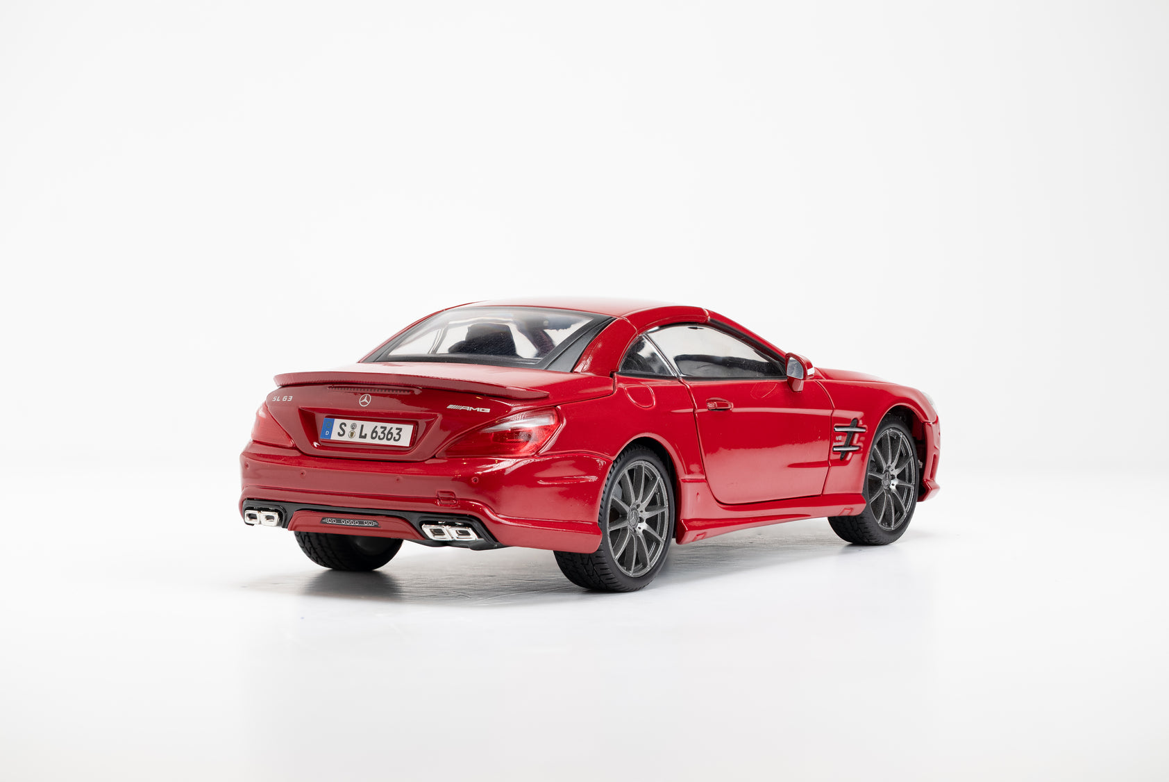 The Mercedes-Benz SL63 AMG Hard Top model scale in red highlights its sporty coupe design and powerful AMG styling, making it a standout collectible.