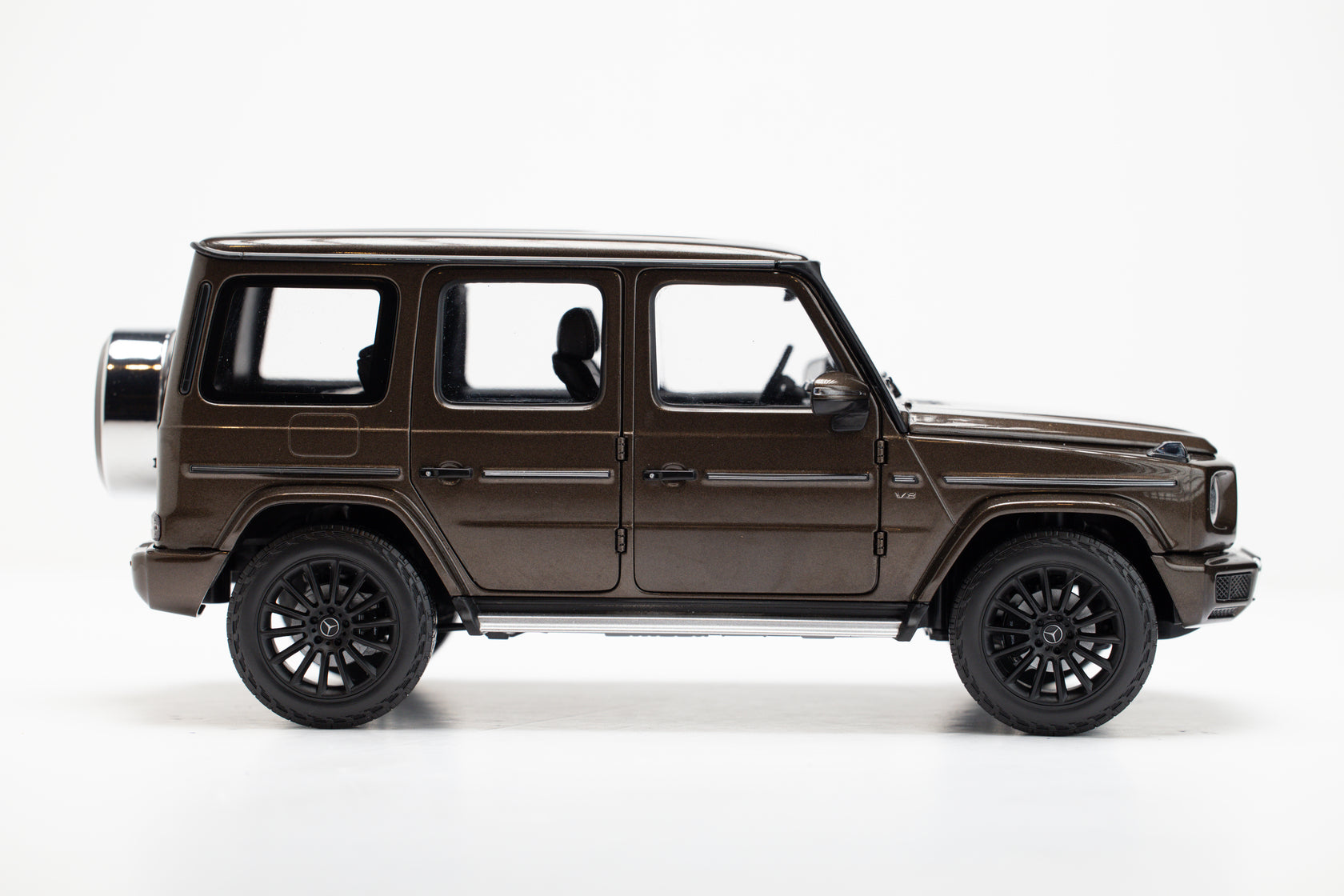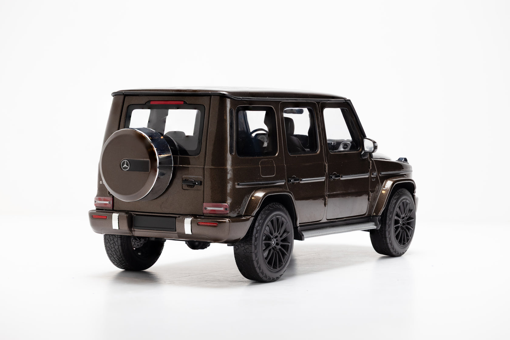 Mercedes G-Class scale model in army green, featuring luxury SUV design and detailed craftsmanship, perfect for collectors and car enthusiasts.