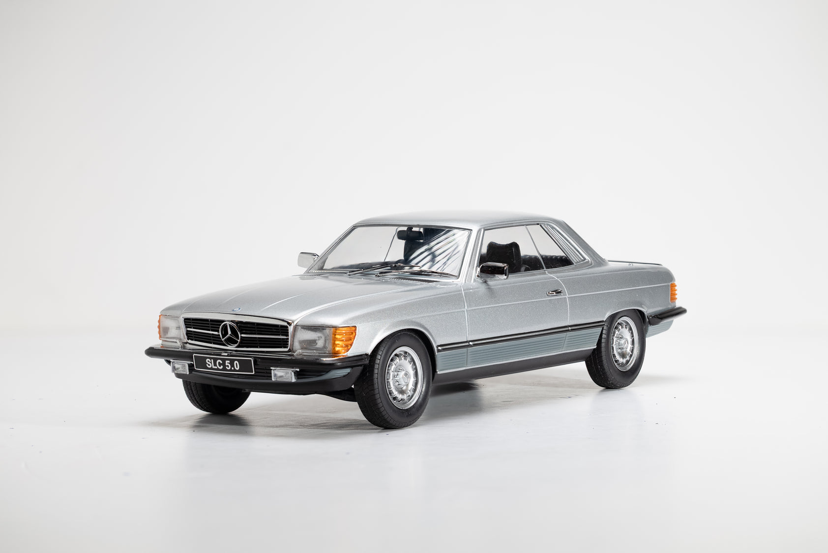 The 1980 Mercedes-Benz SLC 5.0 (C107) was a rare, high-performance grand tourer based on the R107 SL roadster platform, featuring an all-aluminum 5.0L V8 engine, aluminum body panels, and a front and rear spoiler for aerodynamic efficiency and reduced weight