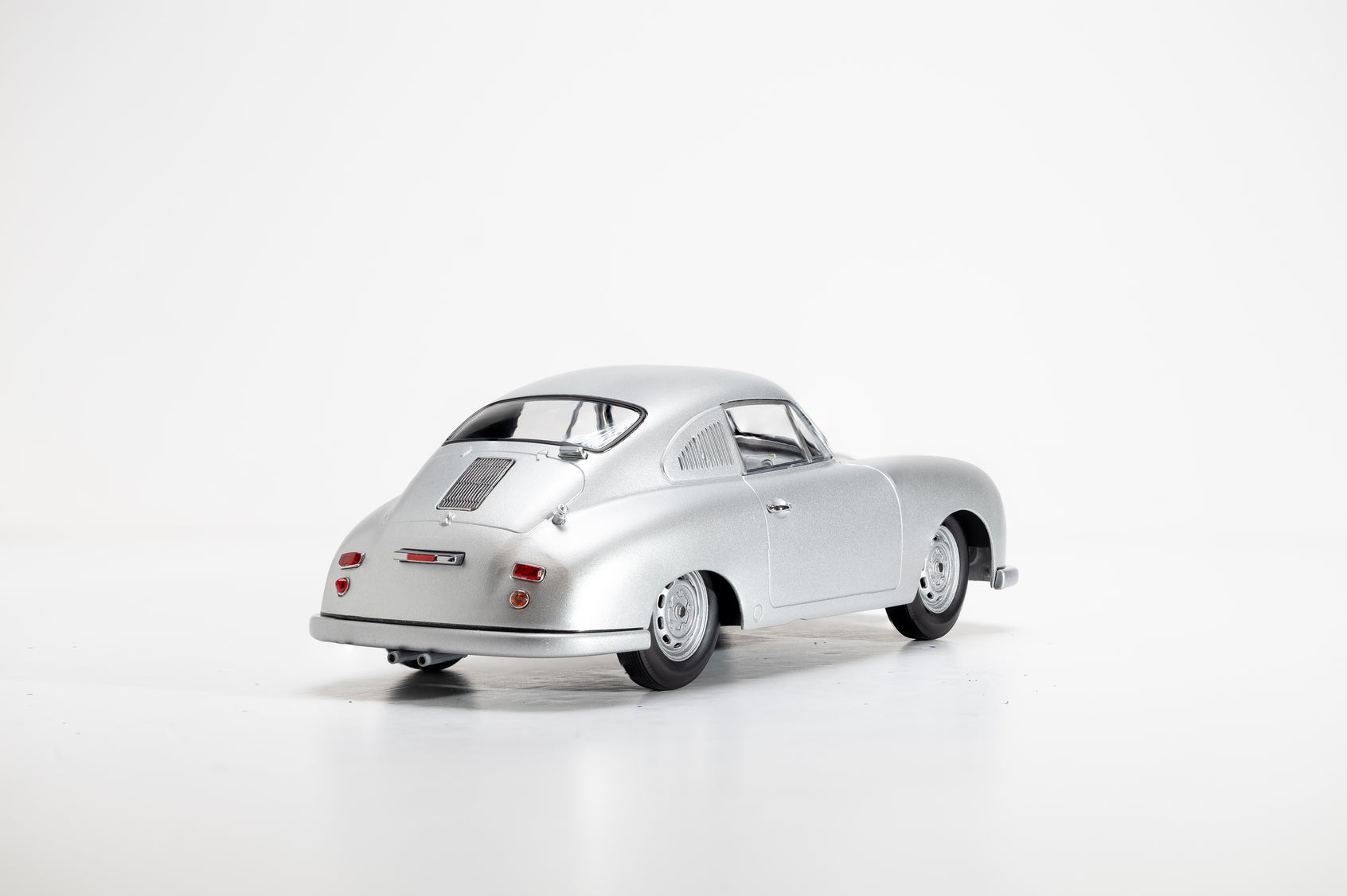 Porsche 356 SL scale model in silver, featuring classic vintage design and detailed craftsmanship, perfect for collectors and car enthusiasts.