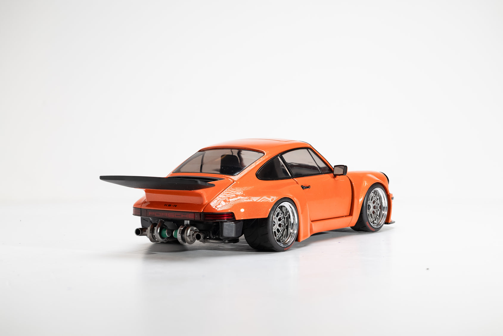 Porsche KSR scale model in orange, featuring sleek sporty design and detailed craftsmanship, perfect for collectors and car enthusiasts.