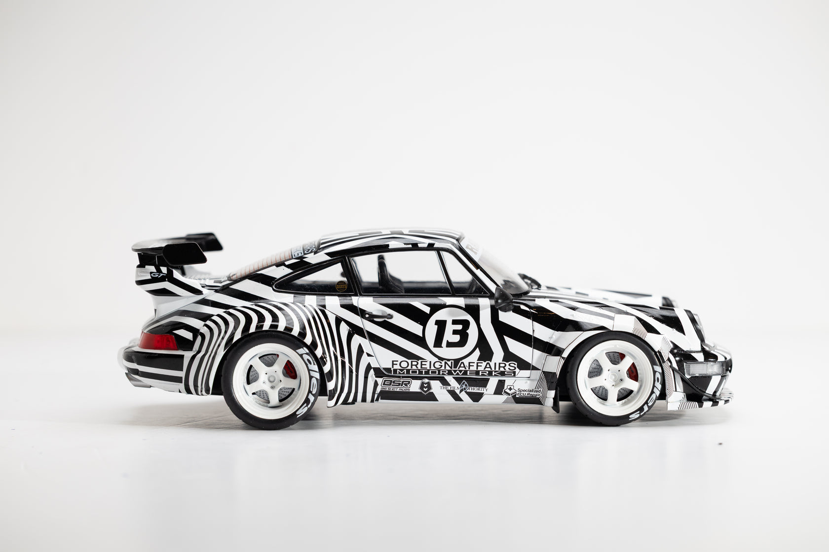 Porsche RWB Zebra scale model, featuring distinctive zebra-themed livery and detailed craftsmanship, ideal for collectors and car enthusiasts.