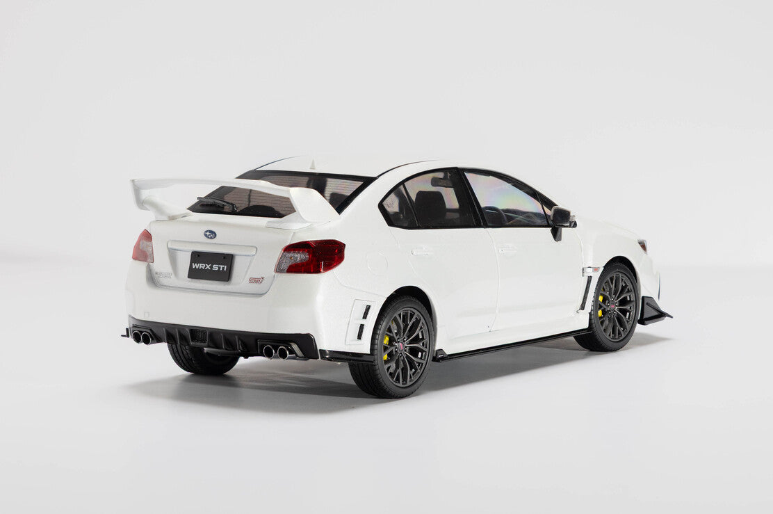 Subaru WRX STI 2018 scale model in white, featuring sporty rally-inspired design and detailed craftsmanship, perfect for collectors and car enthusiasts.